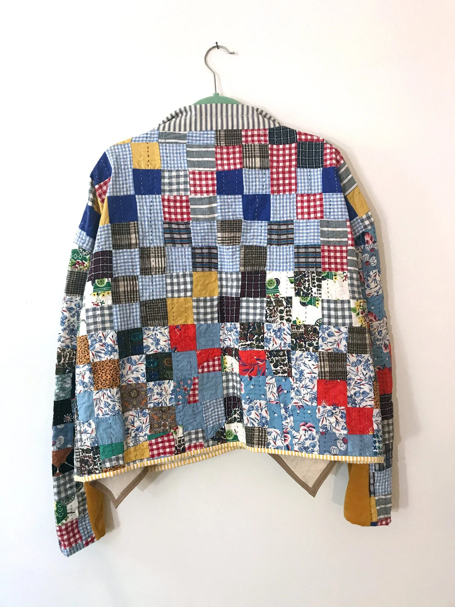 Inspired by meeting designers Emily Bode and Mia Vesper in 2019-2020, I created a line of cut/sewn apparel from my collection of vintage quilts and fabric in 2020. My intention was to scale up my garment production by upcyclng existing quilts instead of piecing the work myself by hand.