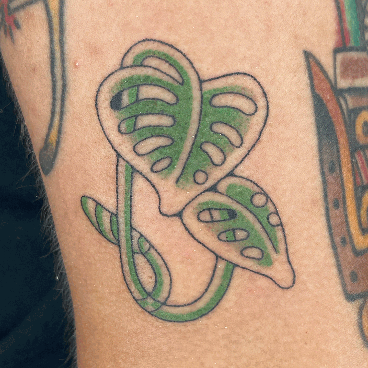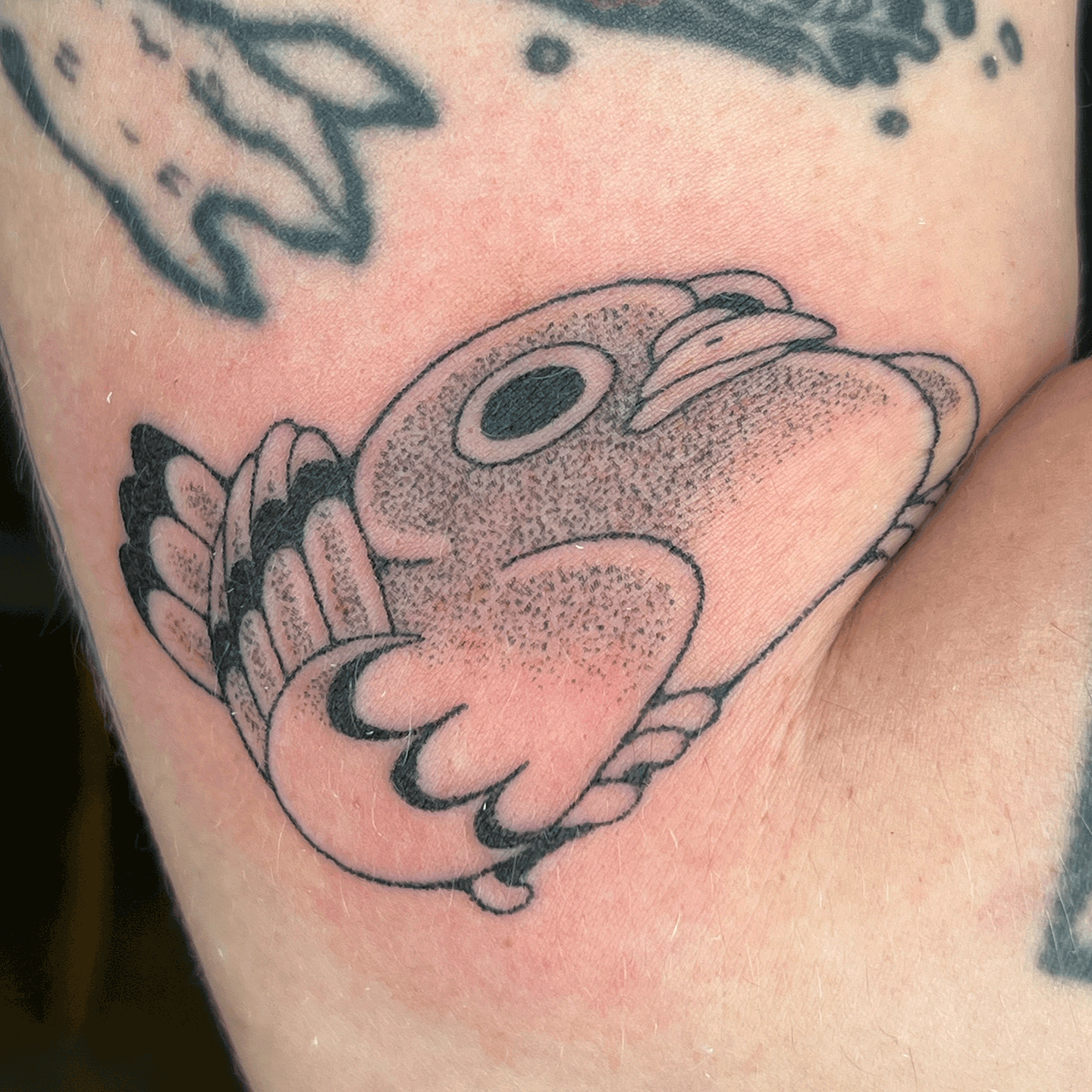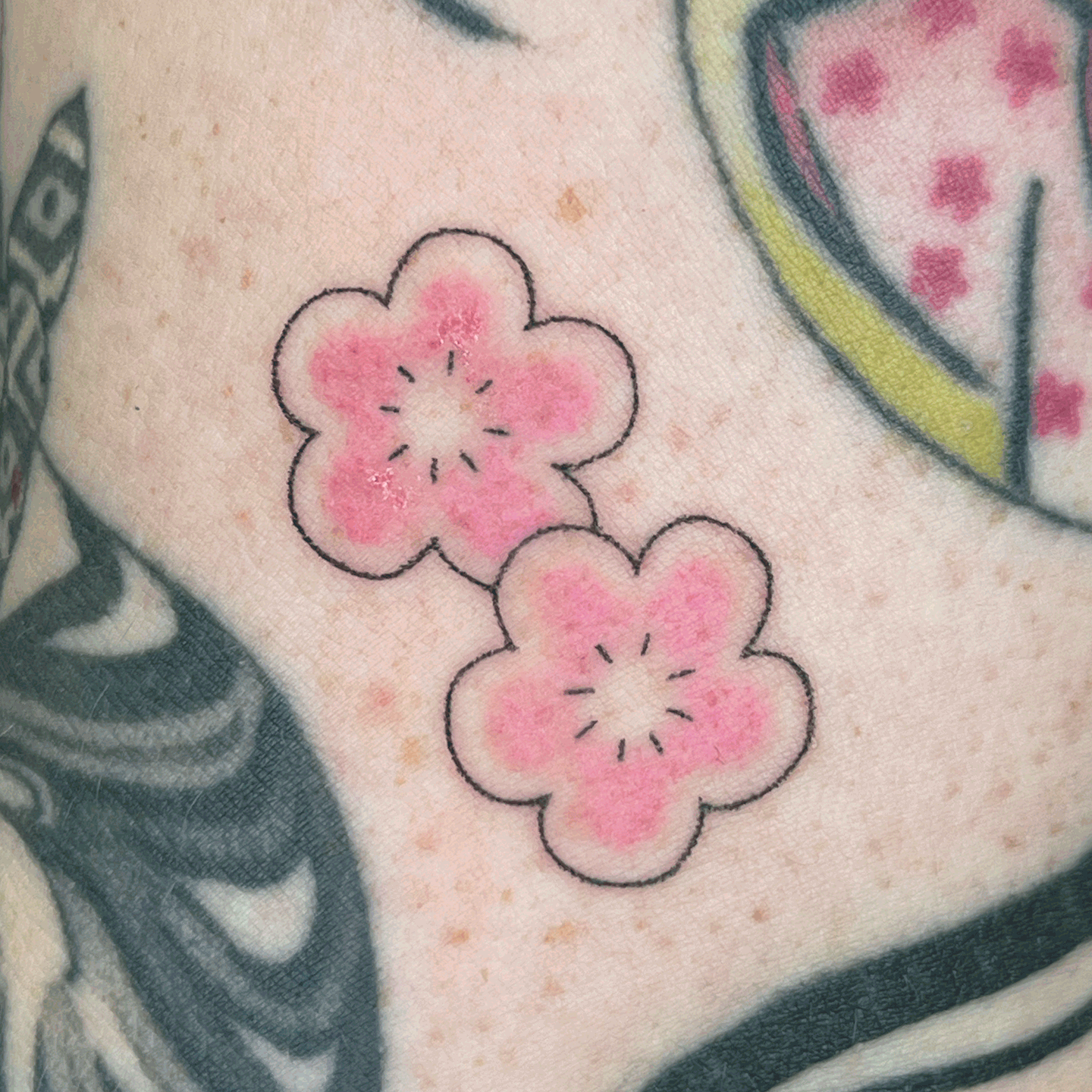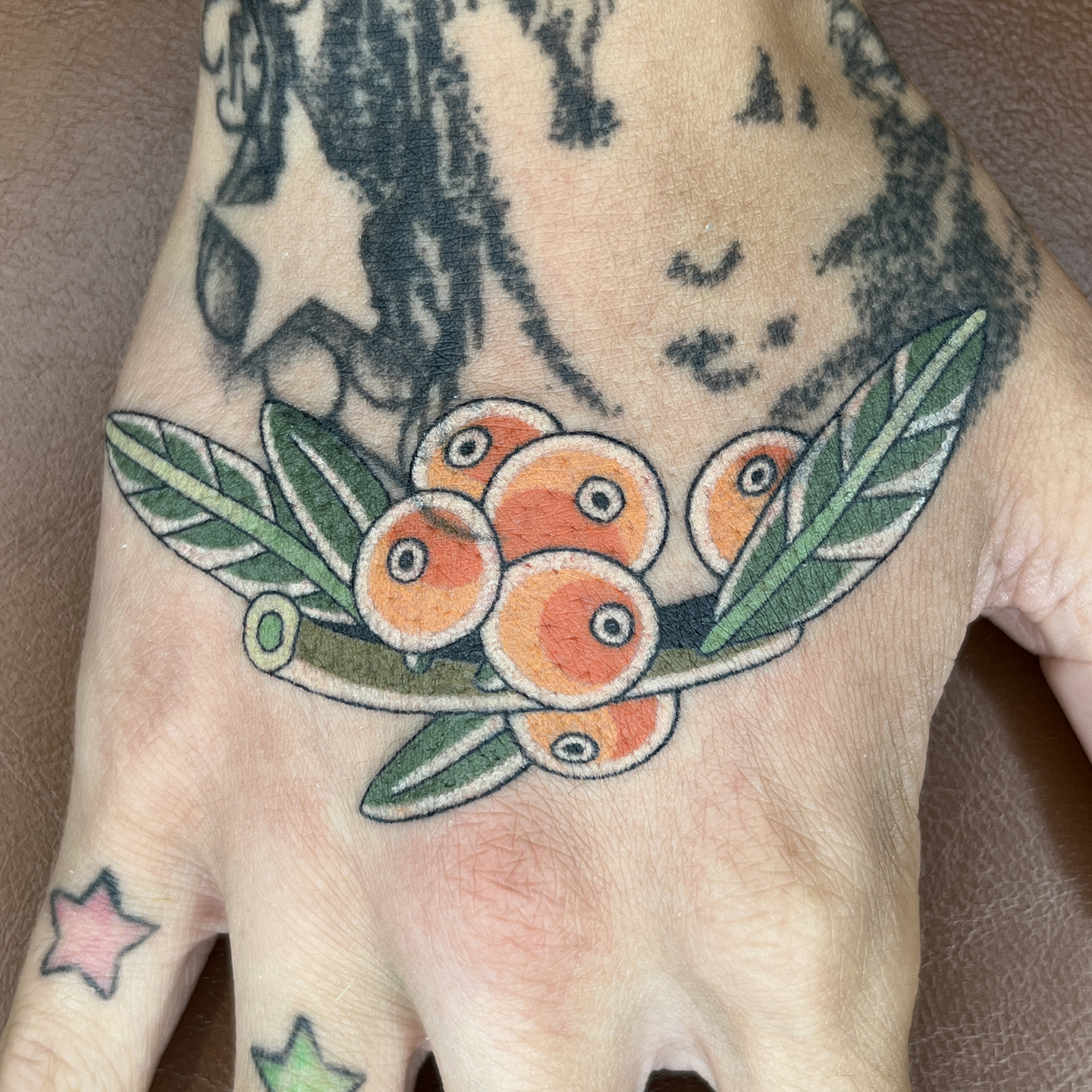 This page shows a selected of fresh and healed tattoos completed by me. My work is all handpoked, or made without a tattoo machine. Learn more about my tattoo practice here.