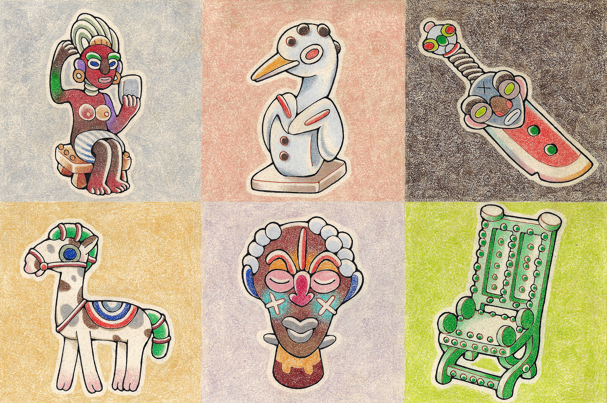 Mrammou is a collection of hand-drawn illustrations I began in 2021. These small drawings are inspired by Akan gold weights. Called ‘mrammou’ in the Akan language, these objects were cast in brass and used as a measuring system for gold dust, the currency used by the Akan people of West African for five hundred years (14th to 19th centuries).
